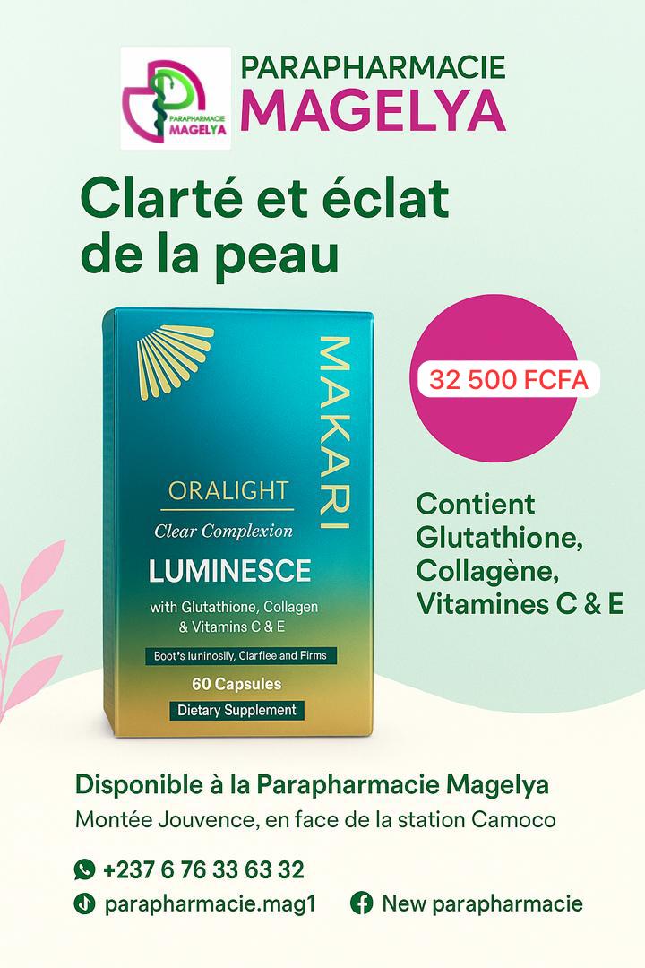 Formule combinant glutathion, collagène hydrolysé, vitamines C et E pour un effet anti-oxydant et éclaircissant.